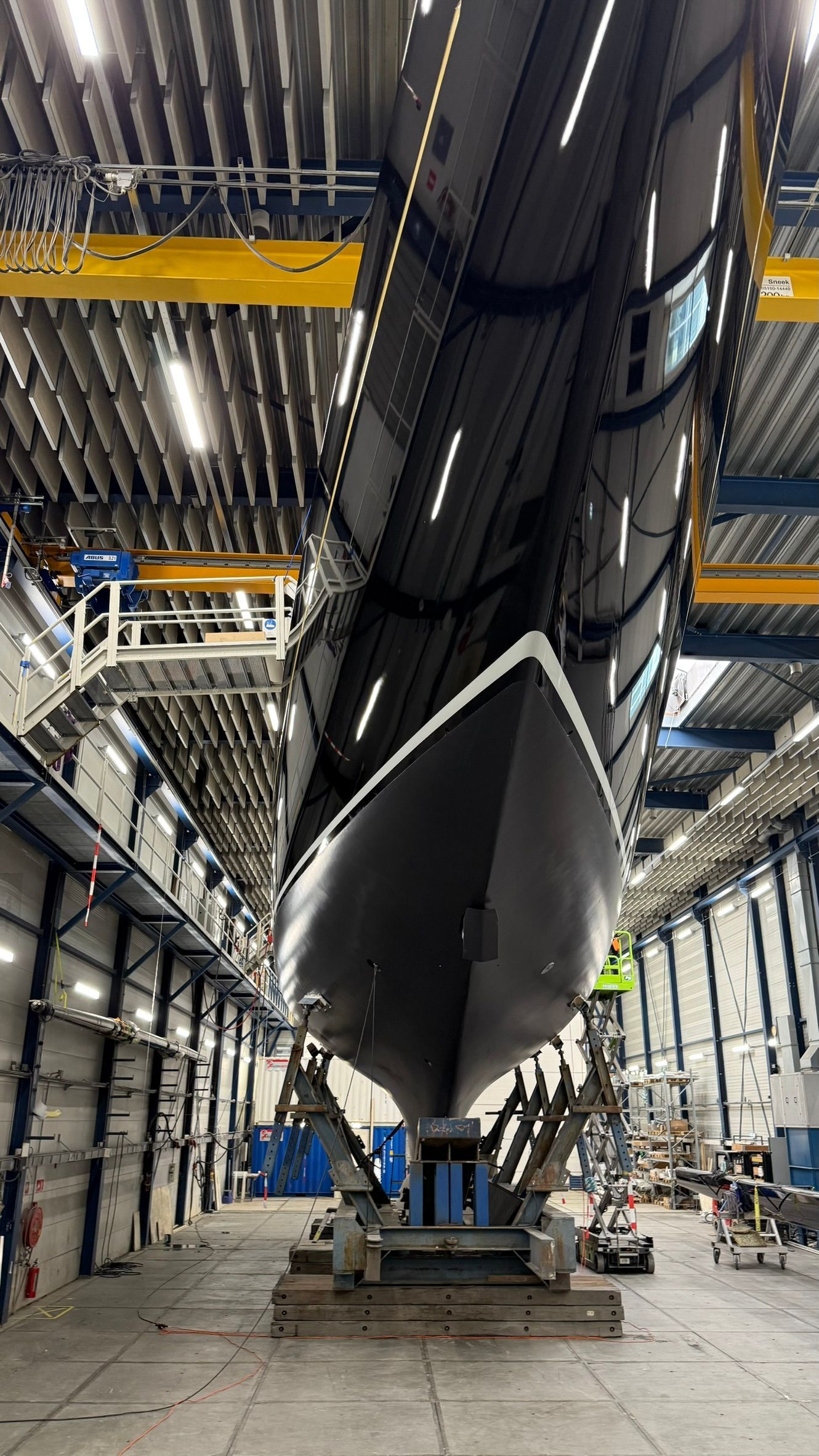 Haar romp is gemaakt van Alustar-aluminium, terwijl de mast en giek van carbon zijn voor optimale prestaties.